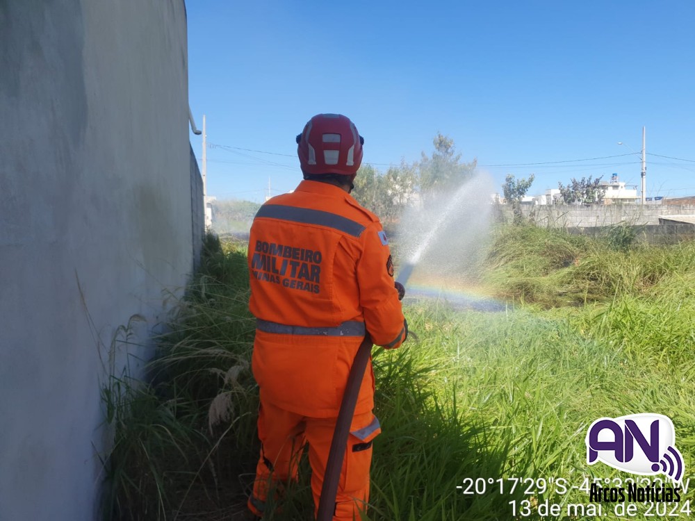 Nesta segunda-feira (13/5), militares do Corpo de Bombeiros foram acionados para combater um incêndio em um lote vago na rua Lagoa da Prata, bairro Novo São Judas, em Arcos.