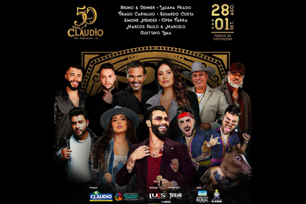 A 50ª edição da ExpoCláudio terá oito shows em cinco dias de festa no Parque de Exposições da cidade. Além das atrações musicais, o evento vai contar com rodeio.