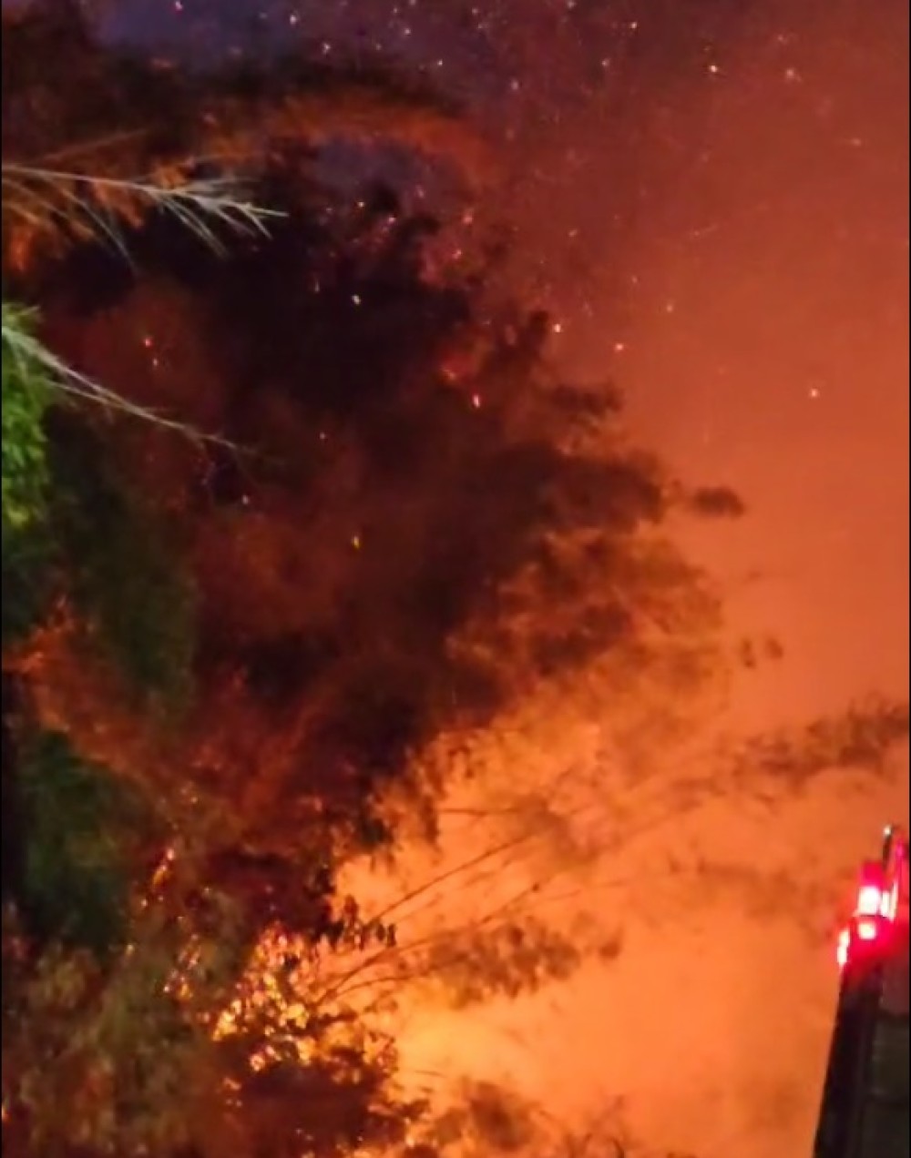 De diversos pontos da cidade foi possível visualizar o incêndio florestal, que consumiu rapidamente um bambuzal e se espalhou pela vegetação, causando preocupação aos moradores.