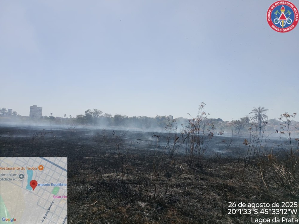 Na manhã desta terça-feira (26/08), o Corpo de Bombeiros Militar foi acionado para atender a uma ocorrência de incêndio em vegetação no município de Lagoa da Prata, na região do bairro Ângelo Perilo, São José.