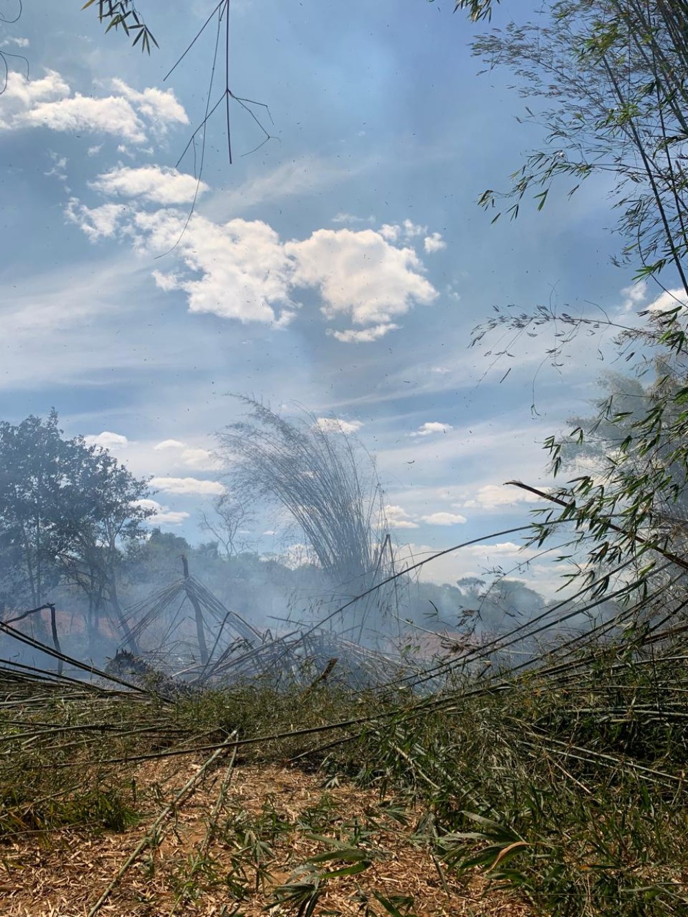 O fogo atingia uma extensa área de mata ciliar, com vegetação densa e moitas de bambu, apresentando diversos focos ativos e risco iminente de propagação para áreas vizinhas. Devido à ausência de acesso viário para as viaturas e à presença de bambuzais em combustão, os militares enfrentaram dificuldades operacionais durante a ação.