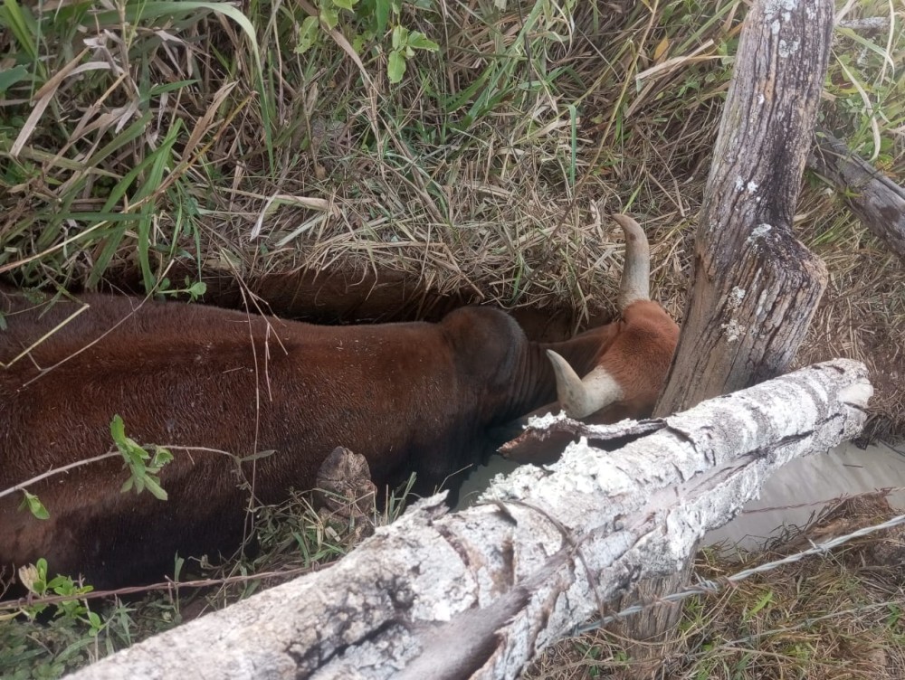 Segundo o proprietário, a vaca estava desaparecida desde a manhã, mas não foi possível determinar por quanto tempo permaneceu presa. Após o resgate, o animal demonstrava dificuldade para caminhar, e o dono foi orientado a buscar atendimento veterinário para garantir os cuidados adequados.