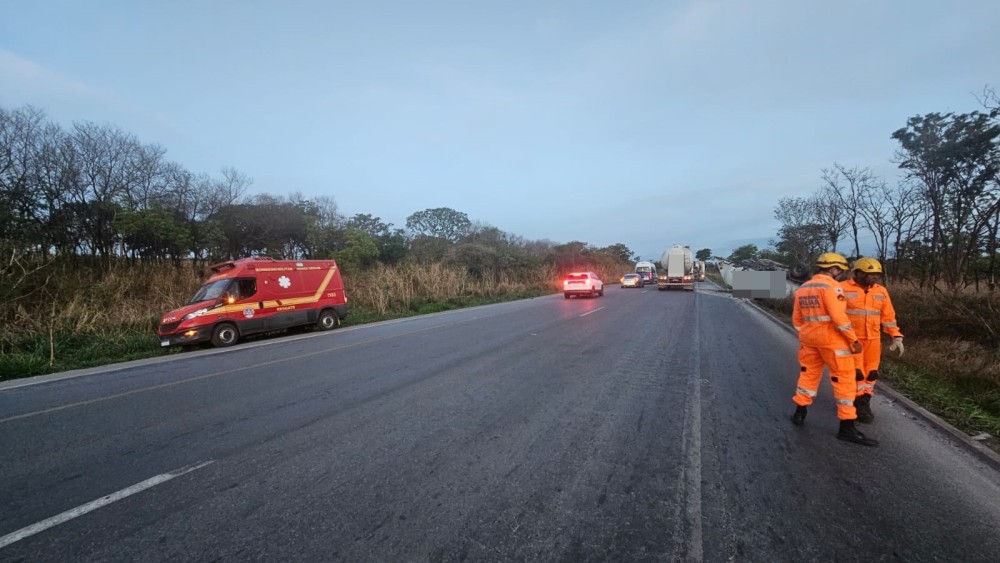 Na tarde deste domingo (26/10), uma carreta carregada com cerca de 31 toneladas de pó de calcário tombou às margens da BR-354, na altura do km 488, no município de Formiga. A 4ª Companhia do Corpo de Bombeiros Militar foi acionada para atender a ocorrência.