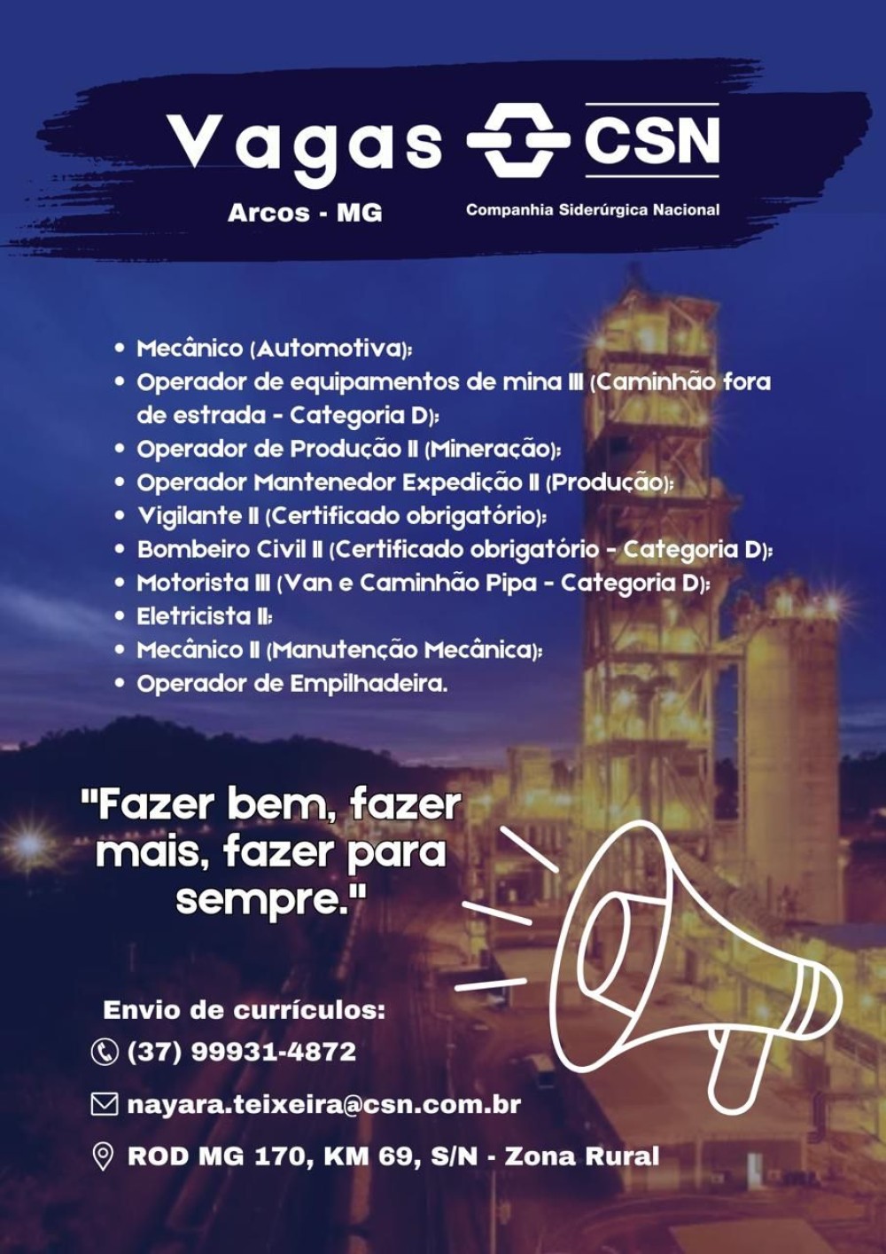 Oportunidade no @grupocsn em Arcos.