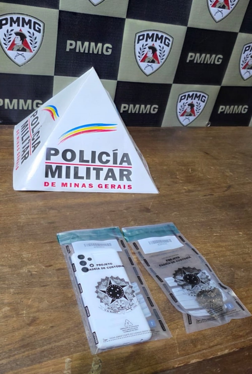 Durante a revista, os militares também encontraram uma porção de maconha, que foi apreendida juntamente com o aparelho recuperado.