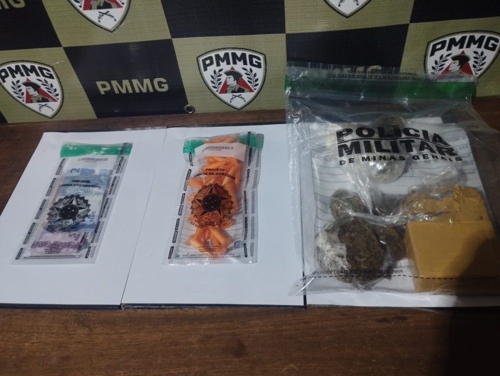 Ao notar a presença da PM, o morador da casa correu para um dos cômodos e tentou se desfazer de uma barra de maconha. No interior da residência, os policiais localizaram ainda 39 pinos de cocaína, uma barra de maconha, uma bucha grande e cinco porções da mesma droga, além de uma balança de precisão, facas com resíduos do entorpecente e materiais usados para embalagem.