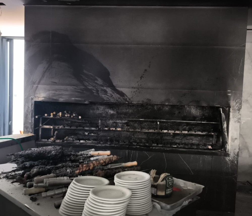Foram registrados danos significativos na churrasqueira e no forro do ambiente, em razão da ação térmica. O calor também provocou avarias em um equipamento de ar-condicionado e em luminárias instaladas no local. Devido à grande quantidade de fumaça e resíduos da combustão, toda a alimentação presente no estabelecimento, incluindo carnes que estavam em preparo, foi considerada imprópria para consumo.