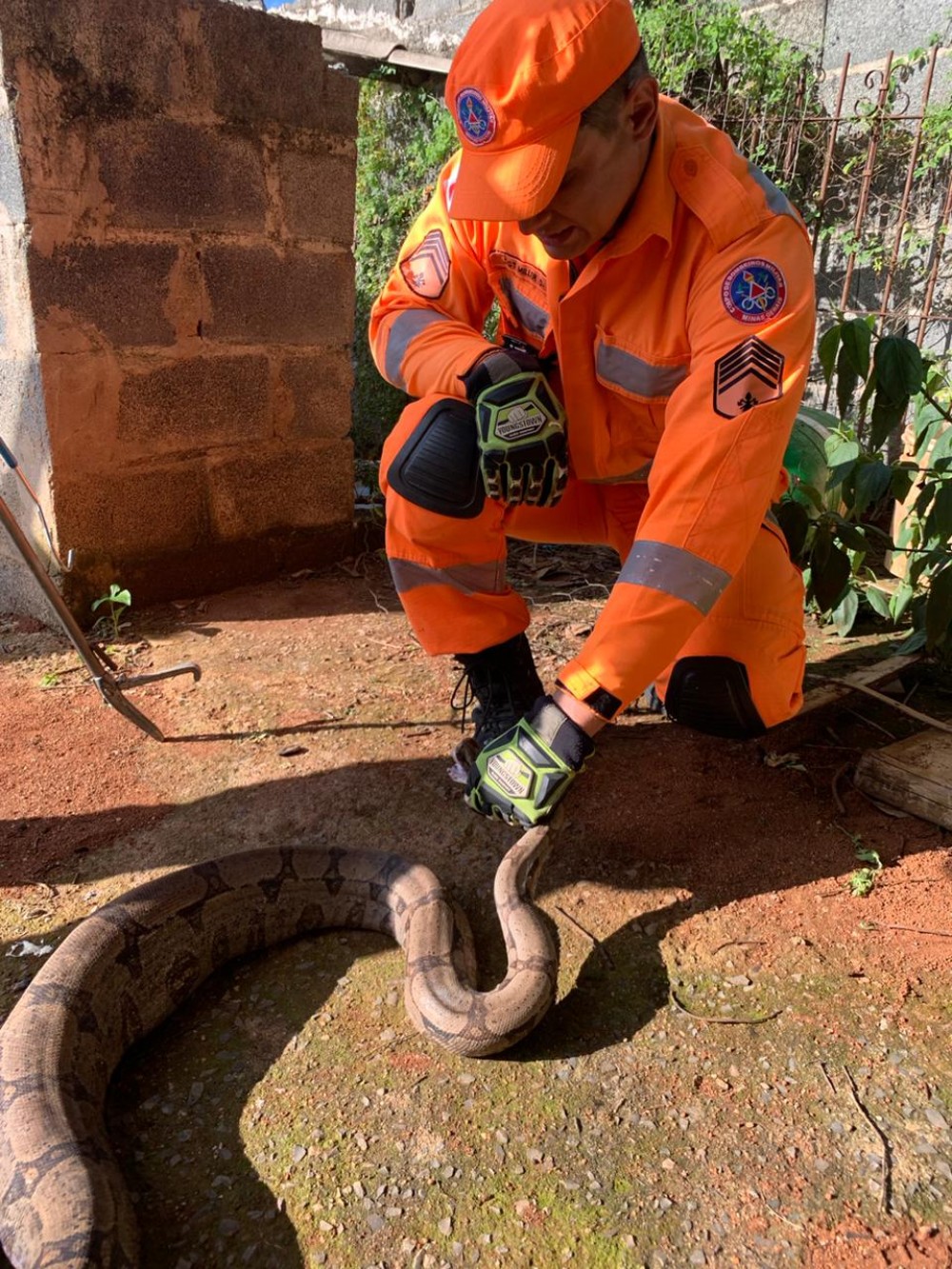Na tarde deste domingo (21/12), o Corpo de Bombeiros Militar de Minas Gerais, por meio da 4ª Companhia de Formiga, realizou a captura de uma jiboia encontrada no quintal de uma residência localizada na Alameda das Rosas, no bairro FIC, zona rural do município. A ocorrência foi registrada às 15h54, após acionamento do COBOM.