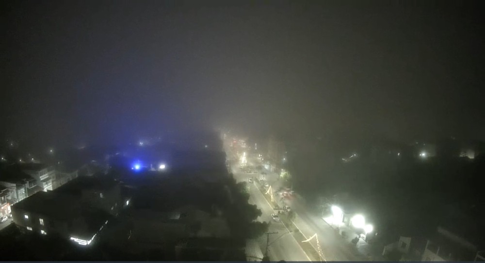 As imagens foram captadas por meio da câmera da Clima Ao Vivo, em parceria com a Twister Soft Net, e mostram a cidade encoberta pela neblina, criando um cenário típico das madrugadas com alta umidade.