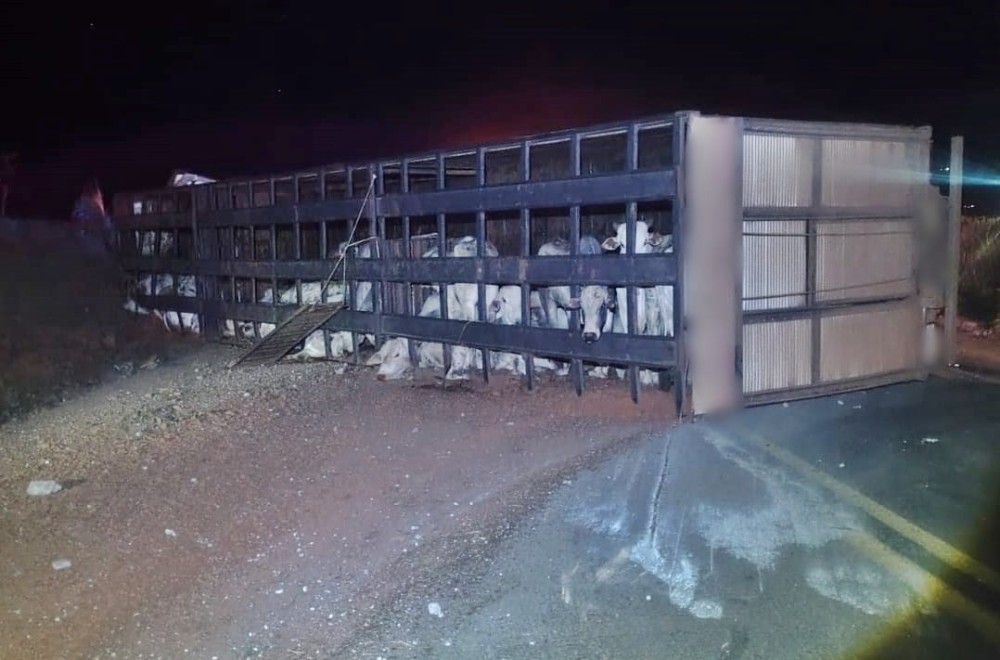 Um acidente de trânsito envolvendo uma carreta carregada com gado foi registrado na noite deste domingo (11/01) na BR-262, no município de Campos Altos. O acidente aconteceu por volta das 21h40, na altura do km 597.