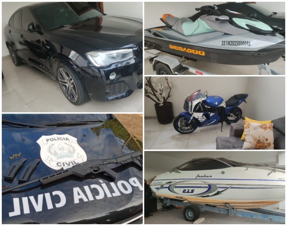 No cumprimento das ordens judiciais, foram apreendidos dispositivos eletrônicos, veículos de luxo, uma lancha aquática, armas de fogo (rifle e pistola calibre 9 mm), documentos, além da correia transportadora subtraída. Todo o material será submetido à análise pericial e investigativa.