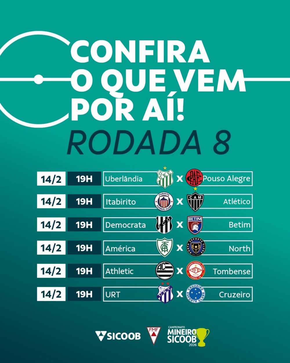 Já no domingo, 22 de fevereiro, às 18h, será a vez do clássico entre Clube Atlético Mineiro e América Futebol Clube, prometendo fortes emoções e casa cheia.
