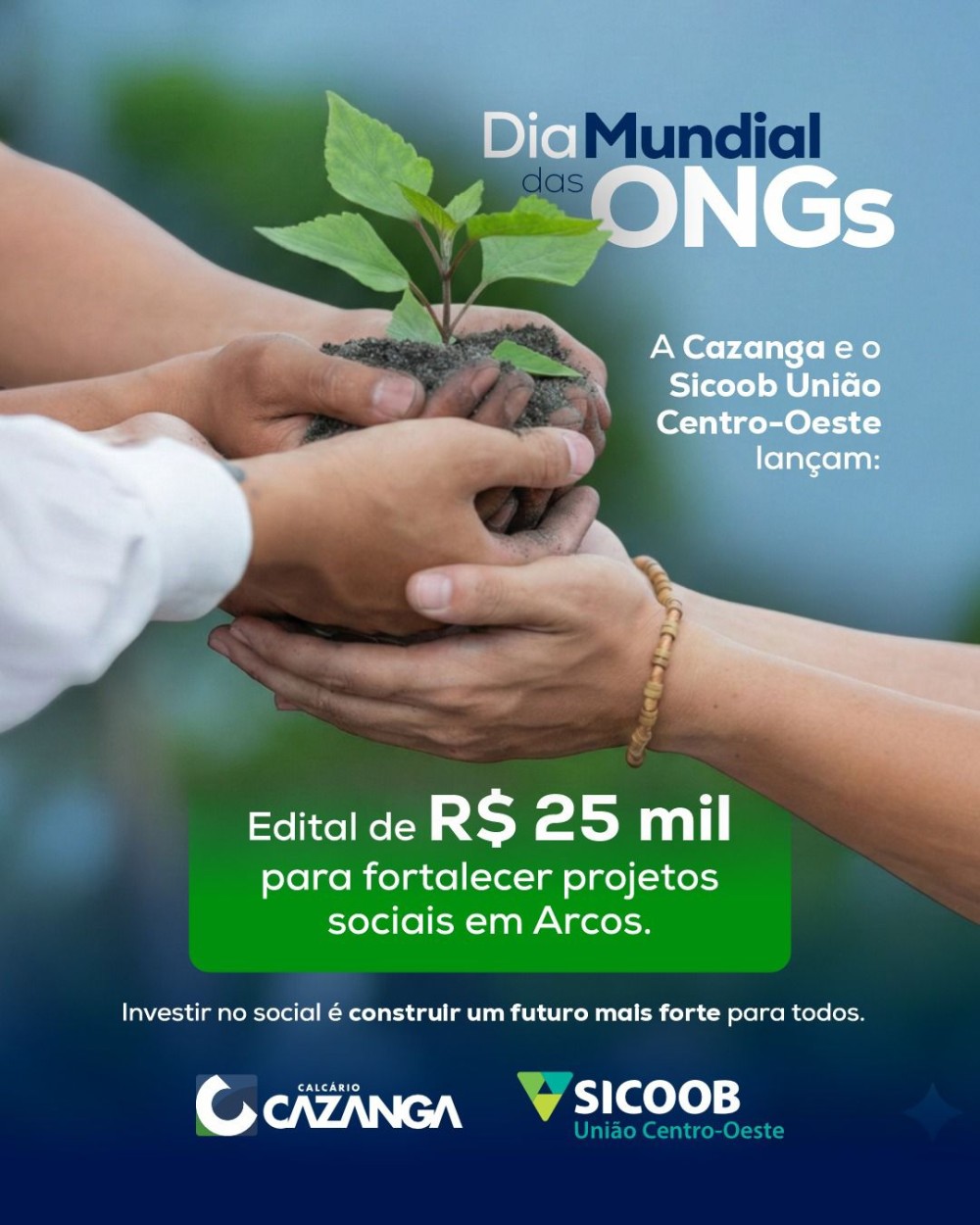 Como forma de reconhecimento ao trabalho incansável das organizações sociais de Arcos e para celebrar o Dia Mundial das ONGs (OSCs), as duas instituições anunciam o lançamento do Edital de Seleção Pública de Patrocínio Social 2026, que disponibilizará R$ 25 mil para apoio a projetos desenvolvidos por entidades sem fins lucrativos do município.