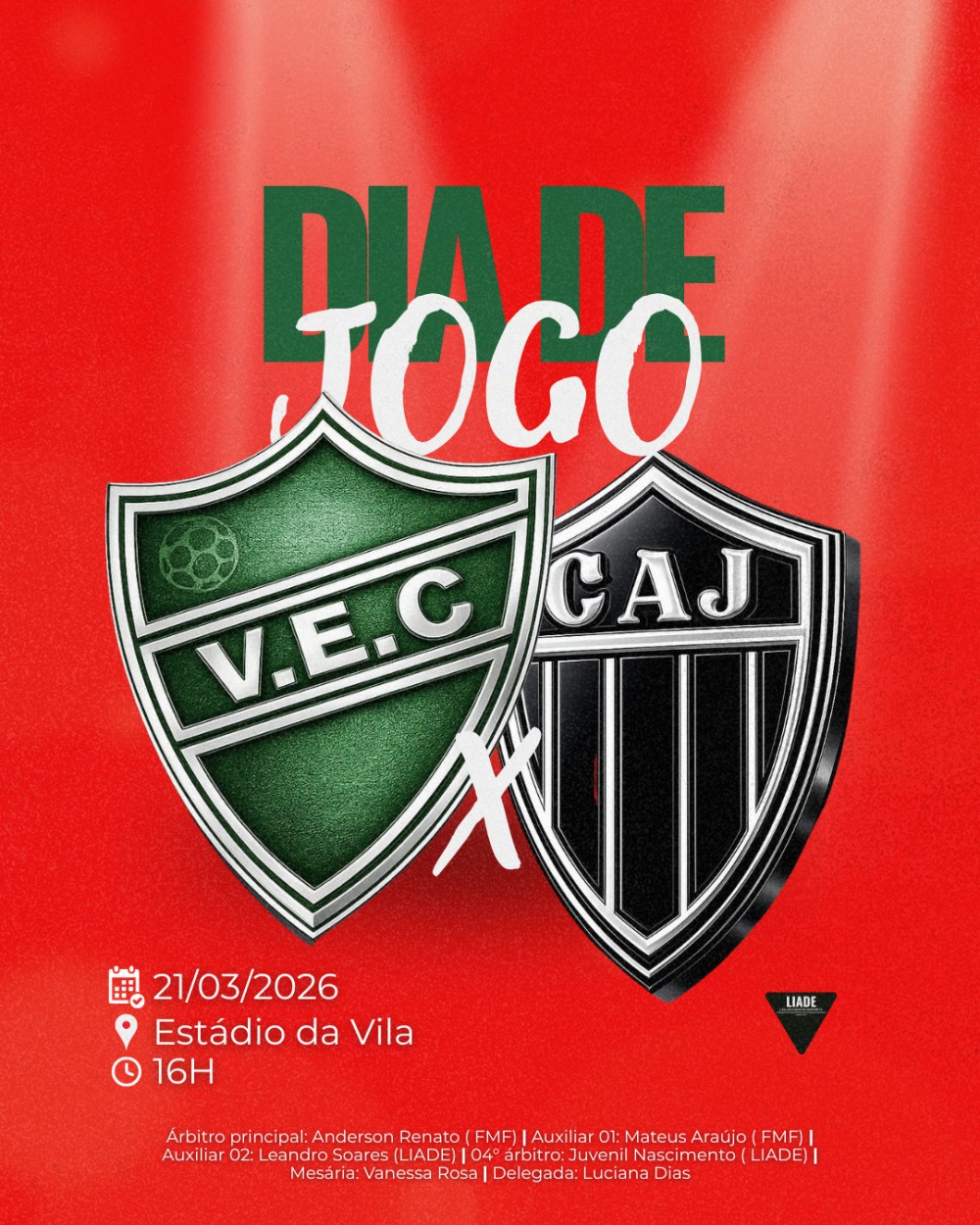 A bola segue rolando em Arcos com mais um importante confronto do Campeonato Municipal de Futebol 2026. Neste sábado, 21 de março, acontece a segunda partida da competição, reunindo as equipes do Vila e do Juventos, a partir das 16 horas, no Estádio Juca Pequeno, campo do Vila.