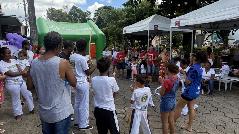 Durante toda a manhã, a praça foi animada por apresentações culturais, com música, dança e capoeira, proporcionando momentos de lazer e valorização da cultura local. A Cooperativa Sicredi também participou da ação, apresentando projetos voltados ao público feminino e realizando sorteios de brindes.