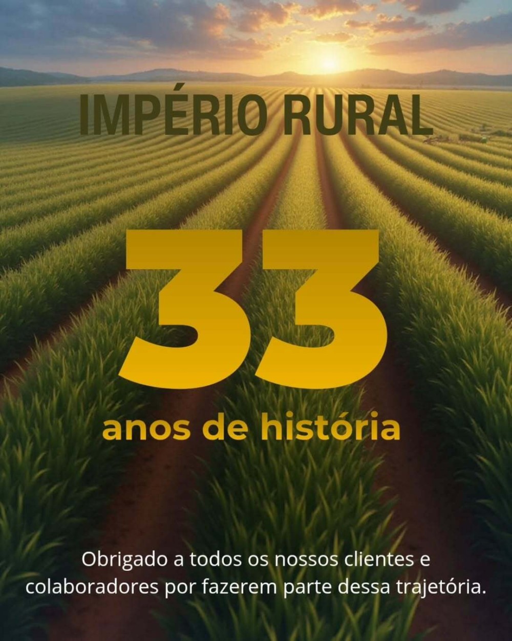 A Império Rural / Rede do Campo celebra, neste ano, 33 anos de uma trajetória marcada por confiança, parceria e compromisso com o desenvolvimento do agronegócio. Ao longo dessas mais de três décadas, a empresa se consolidou como referência no apoio ao produtor rural, estando presente no dia a dia de quem movimenta o campo e contribui para o crescimento da economia.