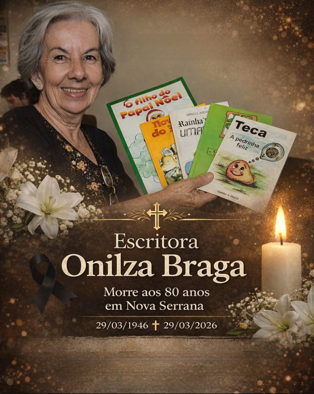 Faleceu neste domingo (29/03/2026), no Hospital São José, em Nova Serrana, a escritora Onilza de Albuquerque Braga Vaz, aos 80 anos.