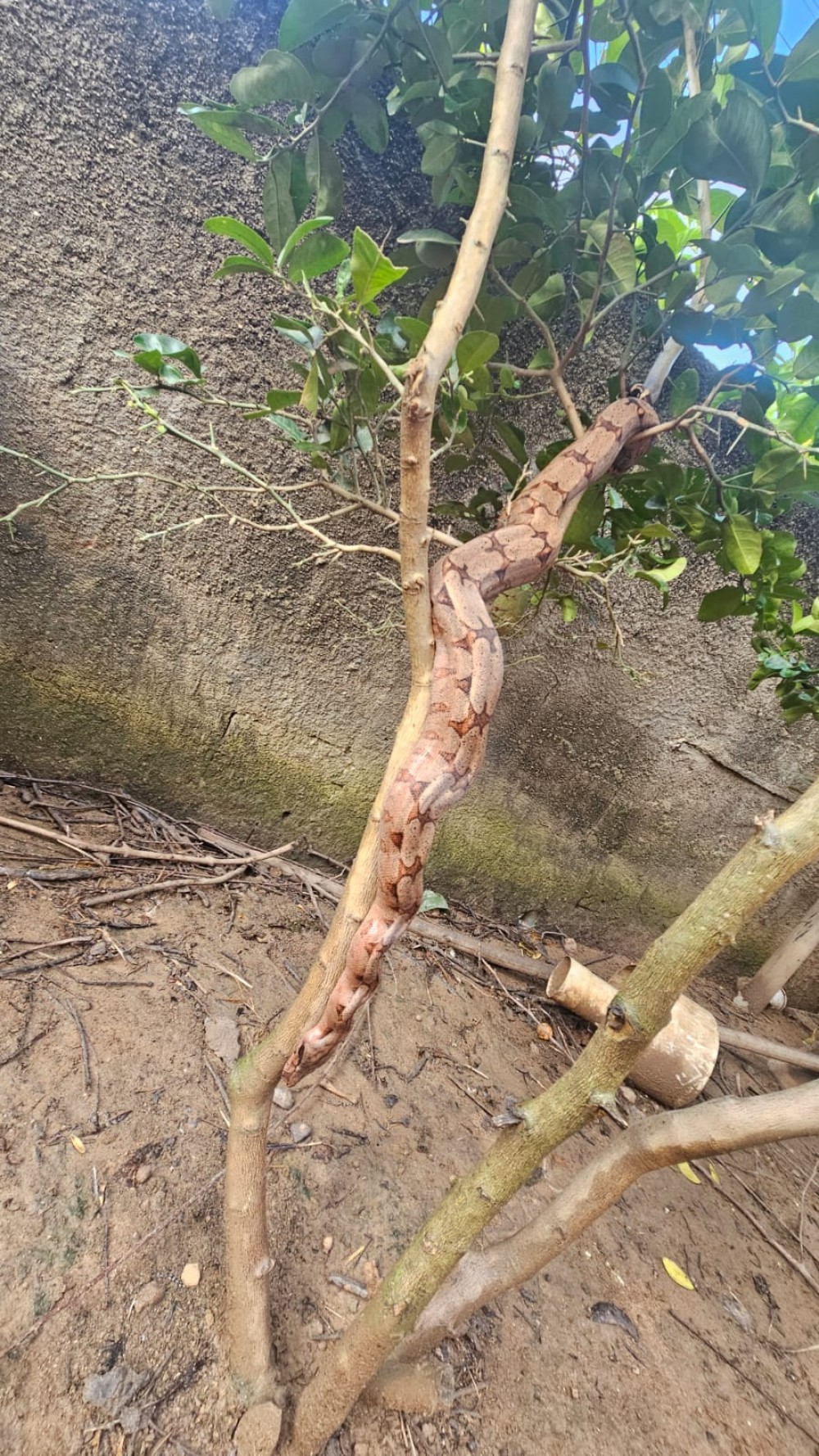 No local, os militares constataram que se tratava de uma jiboia, que estava abrigada em um galinheiro. Utilizando técnicas adequadas e equipamentos específicos para esse tipo de ocorrência, a equipe realizou a captura de forma segura, preservando tanto a integridade dos moradores quanto do animal.