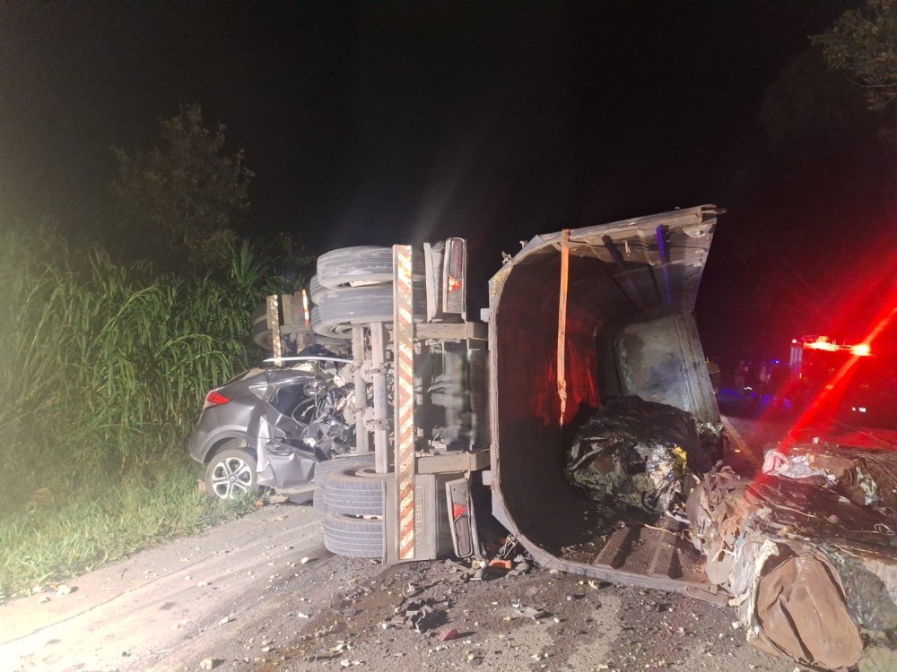 Ainda de acordo com a Polícia Militar Rodoviária, a condutora do automóvel ficou presa às ferragens e não resistiu aos ferimentos. Com o impacto, a carga de sucata prensada transportada pelo rodotrem se espalhou pela pista, interditando completamente os dois sentidos da via por cerca de sete horas, até a remoção dos veículos e a liberação do tráfego.