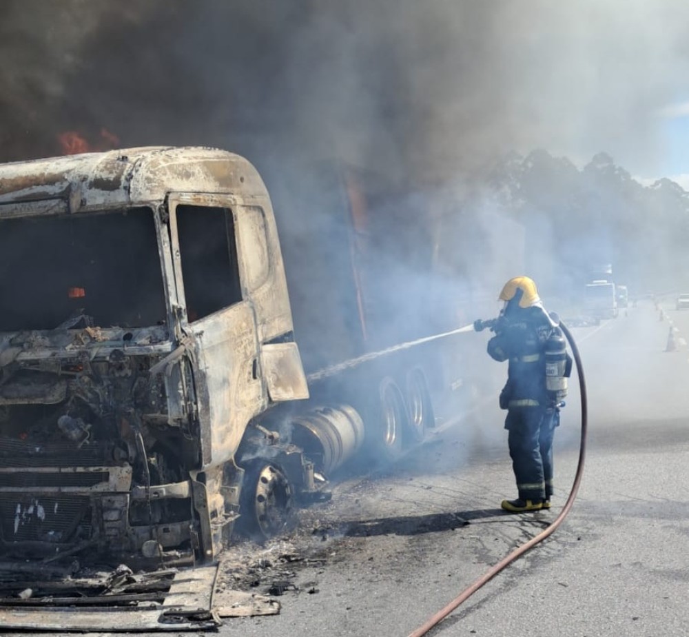 Após a extinção do incêndio, os militares realizaram o trabalho de rescaldo da carga e promoveram a sinalização da via, garantindo a segurança dos demais motoristas que trafegavam pela rodovia.