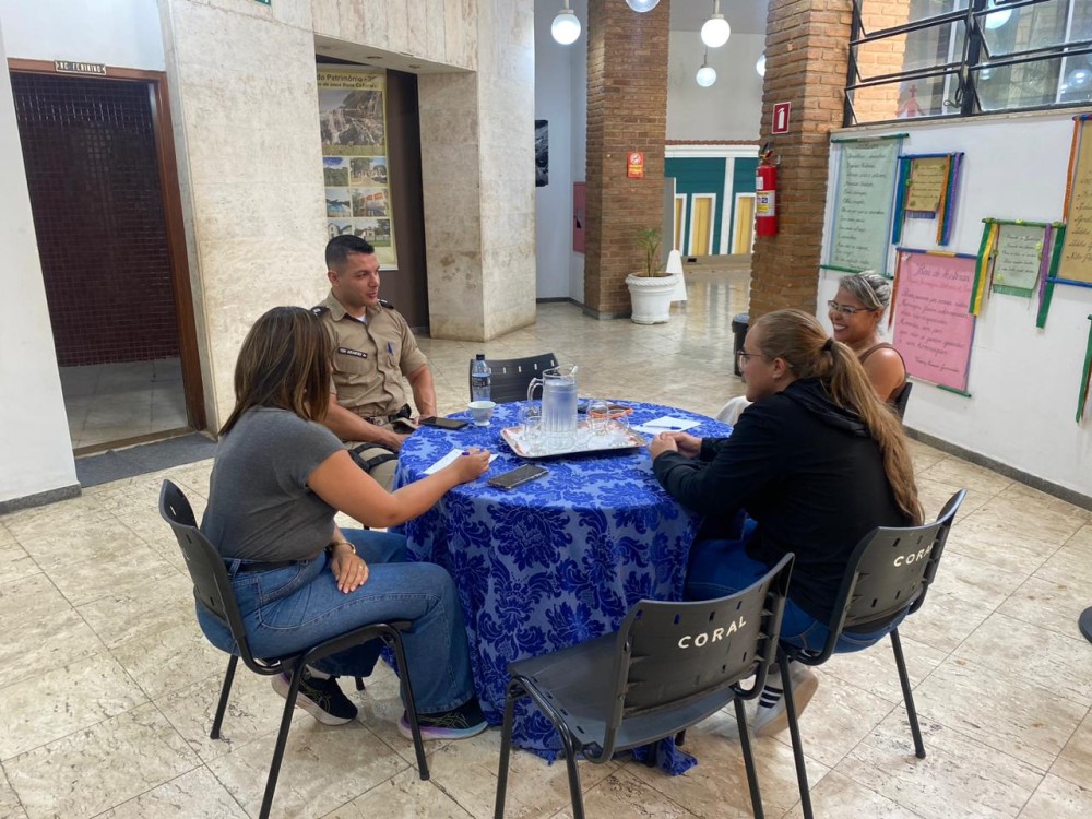 O encontro foi realizado na Casa de Cultura e contou com a presença do 1º Tenente Rhuan Arantes da Cunha, comandante do 1º Pelotão da 241ª Companhia da PM, além da secretária municipal de Cultura, Maria Eduarda Rodrigues, Camila Carvalho e a responsável pela equipe de segurança do evento, Daniela Samara.