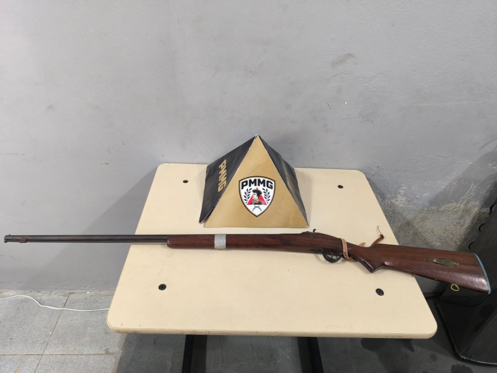 Ao chegarem ao local, os militares realizaram a abordagem do suspeito e, durante buscas no imóvel, localizaram no quarto dele uma espingarda do tipo “polveira”. A arma, de fabricação artesanal, não possuía marca de identificação, calibre definido ou número de série.