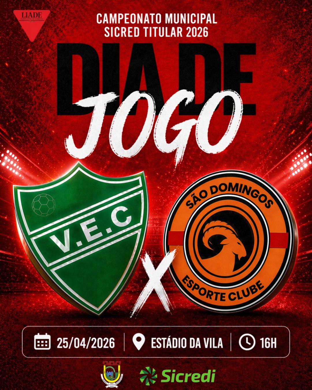 A bola vai rolar para mais um grande confronto do Campeonato Municipal Sicredi de Futebol 2026. Neste sábado (25/04), o Vila Esporte Clube entra em campo para enfrentar a equipe do São Domingos, em partida válida por mais uma rodada da competição.