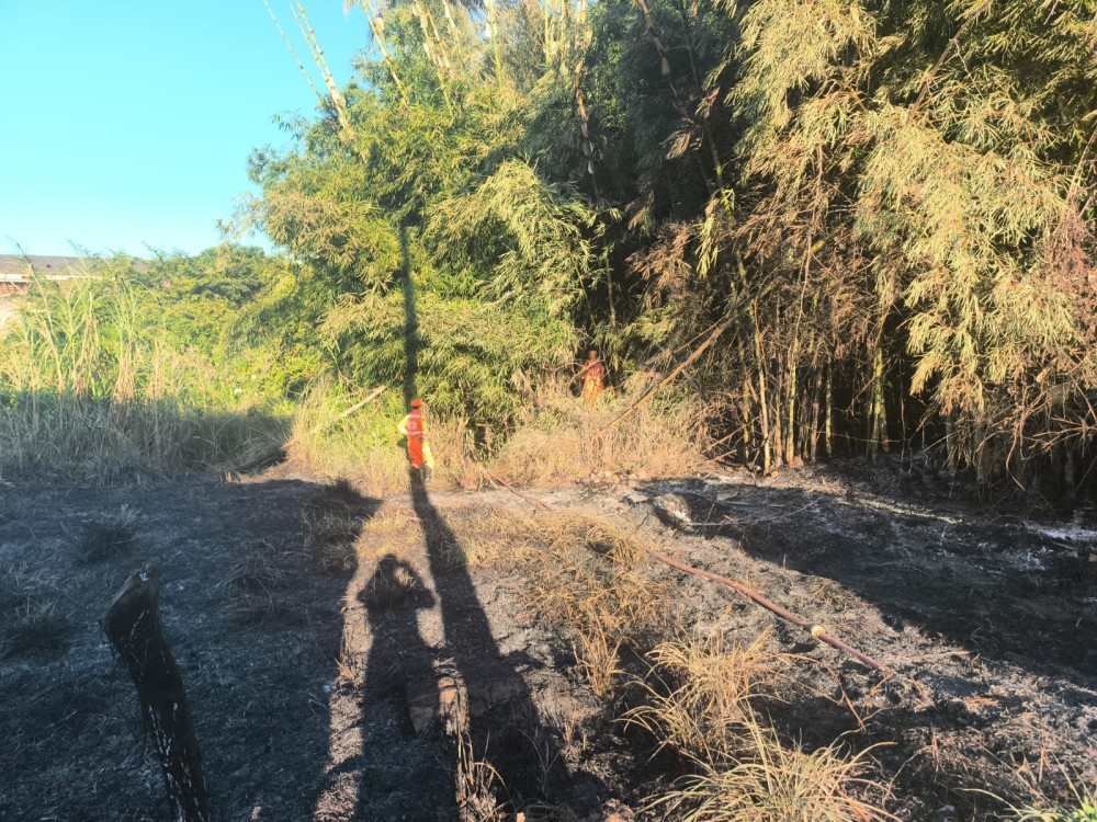 Ao chegar ao local, por volta das 16h01, os militares constataram que as chamas atingiam uma área de vegetação densa, composta por braquiária e bambuzal, com grande quantidade de material combustível. O fogo estava concentrado em um bambuzal, o que exigiu rápida intervenção da equipe para evitar a propagação para áreas próximas.