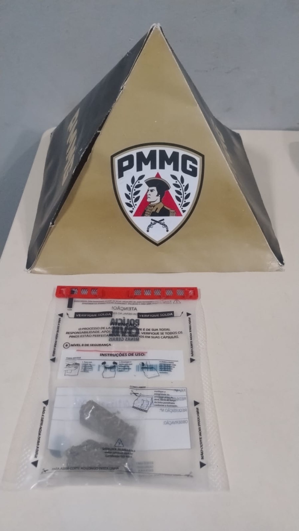 Durante varredura no local, os policiais encontraram dois tabletes de substância análoga à maconha, acondicionados em invólucro plástico, além da motocicleta utilizada pelo suspeito.