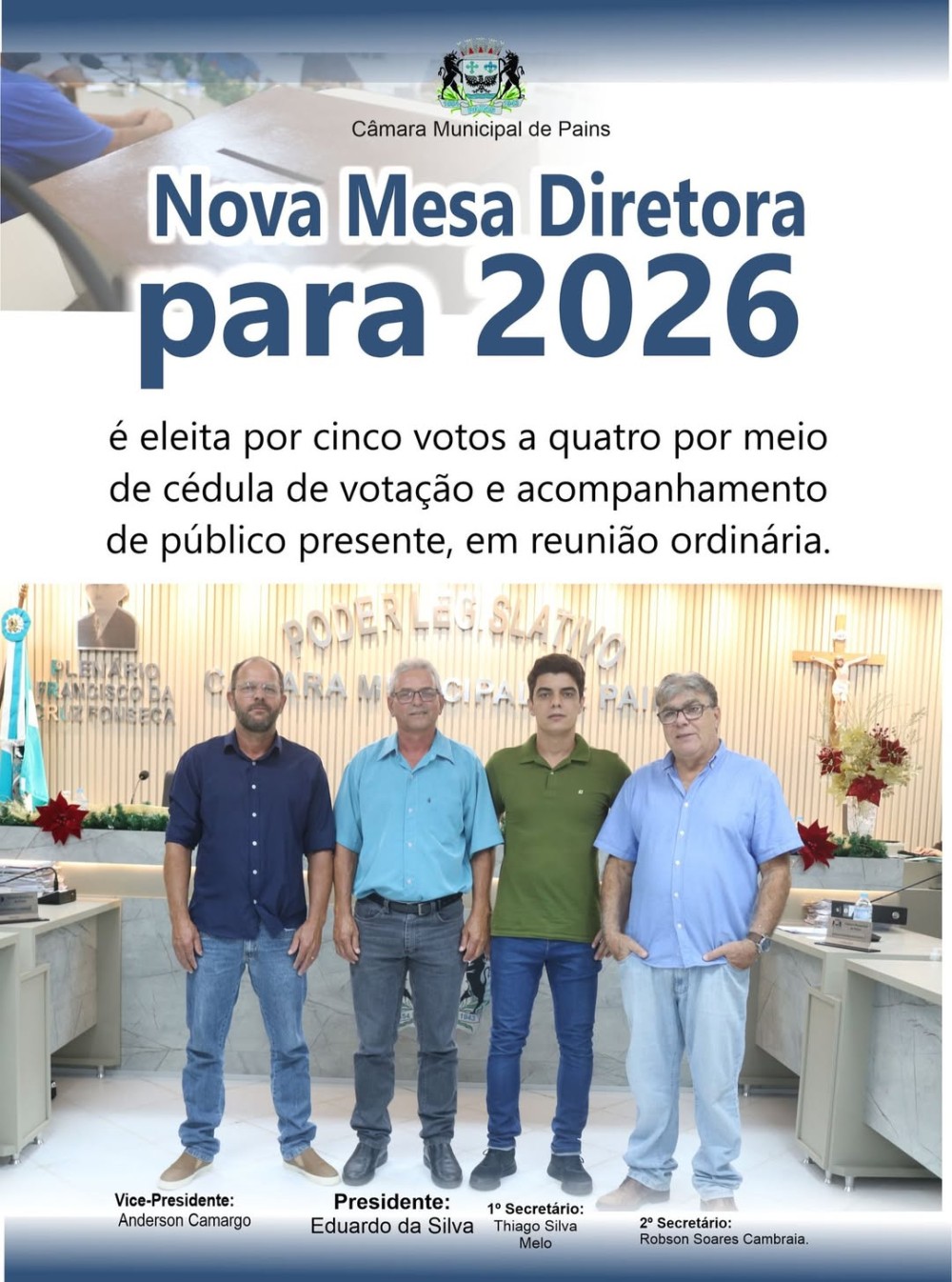 Em eleição realizada na noite de segunda-feira (15/12) foram escolhidos também os demais componentes da segunda Mesa Diretora para o segundo ano da 20ª Legislatura