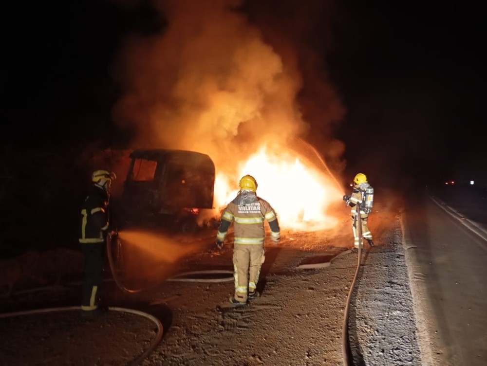 Incêndio em caminhão na BR-354 mobiliza Bombeiros em Formiga