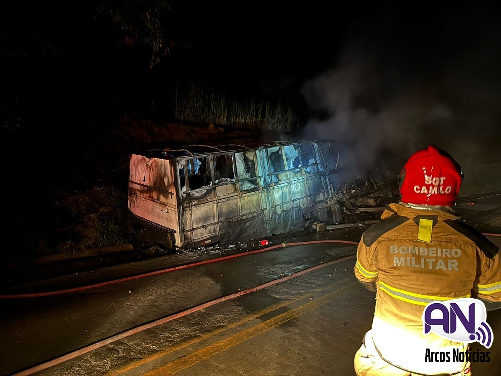 Bombeiros combatem incêndio em veículo às margens da MG 170 entre Arcos e Lagoa da Prata