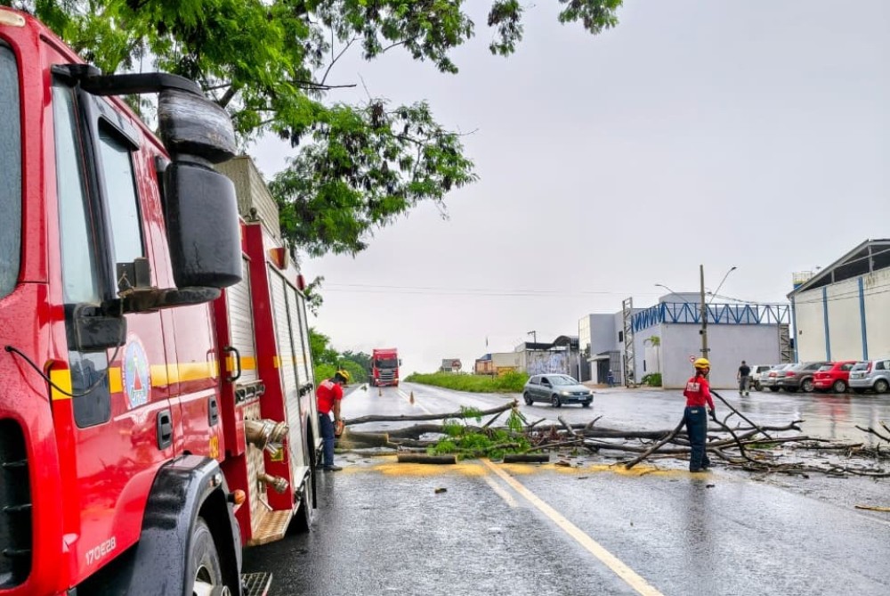Bombeiros realizam corte e remoção de árvore caída na BR-354, em Arcos